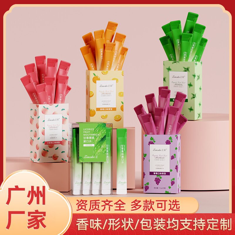 現物の果物の味のうがいの水の携帯型の使い捨ての息の清新な男女の条の形のうがいの液体のメーカーは卸売りします。