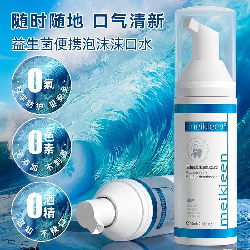 プロバイオティックフォームのポータブルマウスウォッシュは歯をきれいにし、マイルドで刺激がなく、口臭を爽やかにし、毎日の旅行に不可欠です。