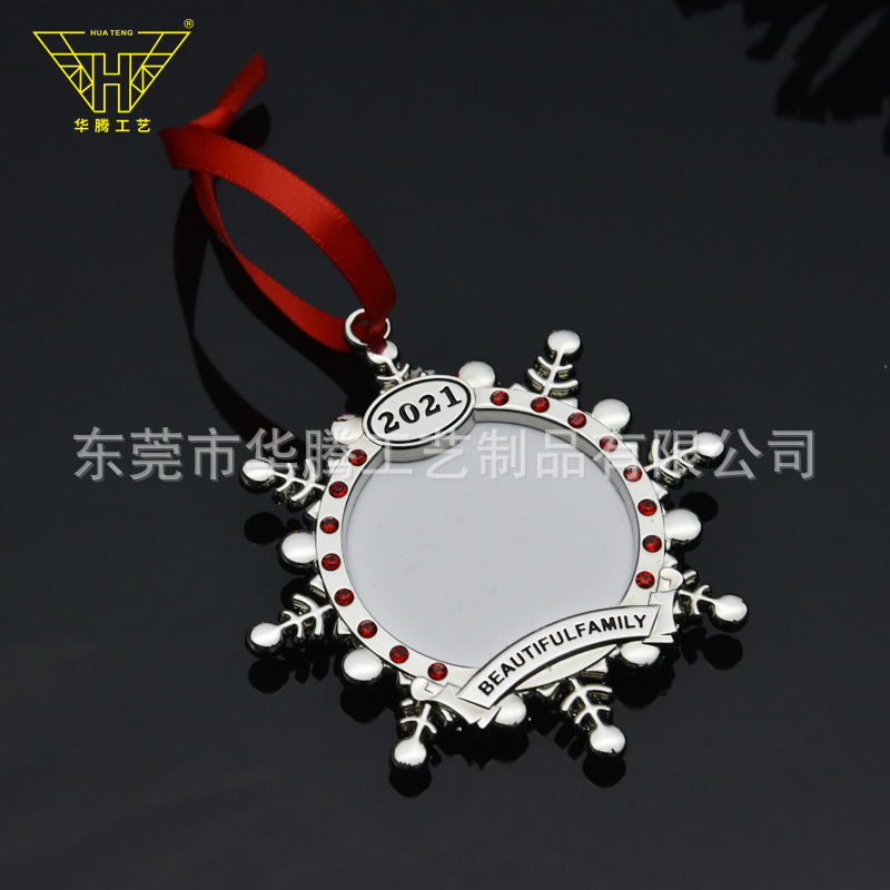 金属のクリスマスのフォトフレームストラップメーカーのクリスマスツリーの祝日の装飾品のペンダントの小さいフォトフレームストラップ工場