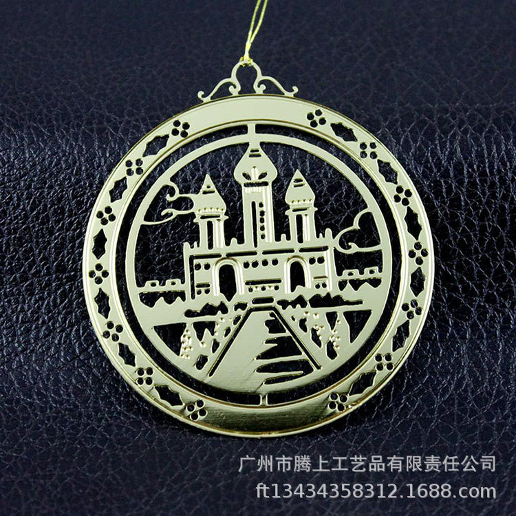 金属工芸品の透かし彫り城の対外貿易のクリスマスは装飾品の銅の材料を掛けて出荷します。