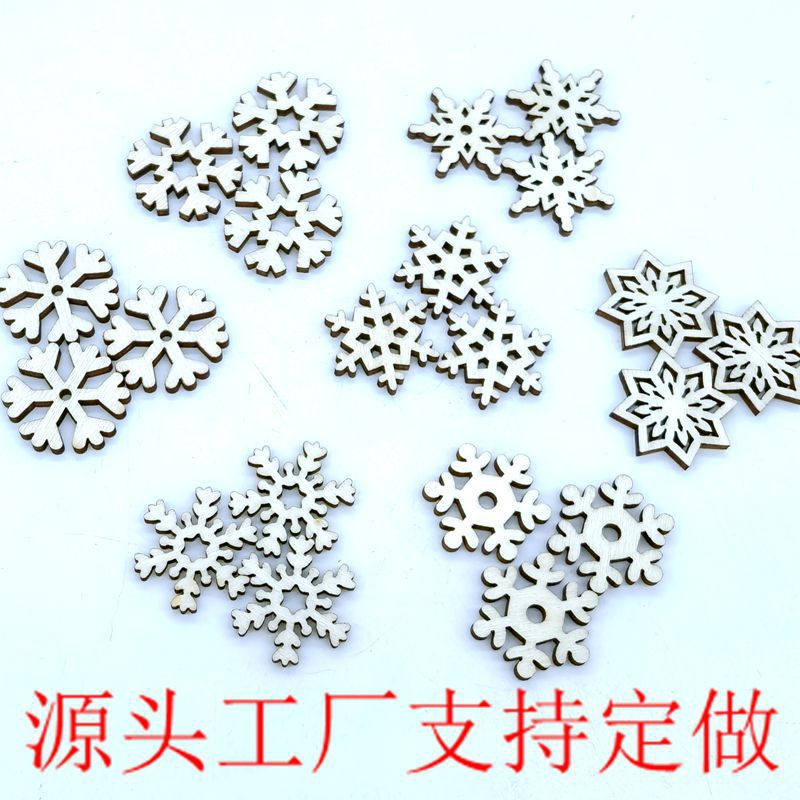 レーザーカット木製クリスマススノーフレークウッドチップ外国貿易輸出クリスマスオーナメント子供の DIY 手作り落書きウッドチップ