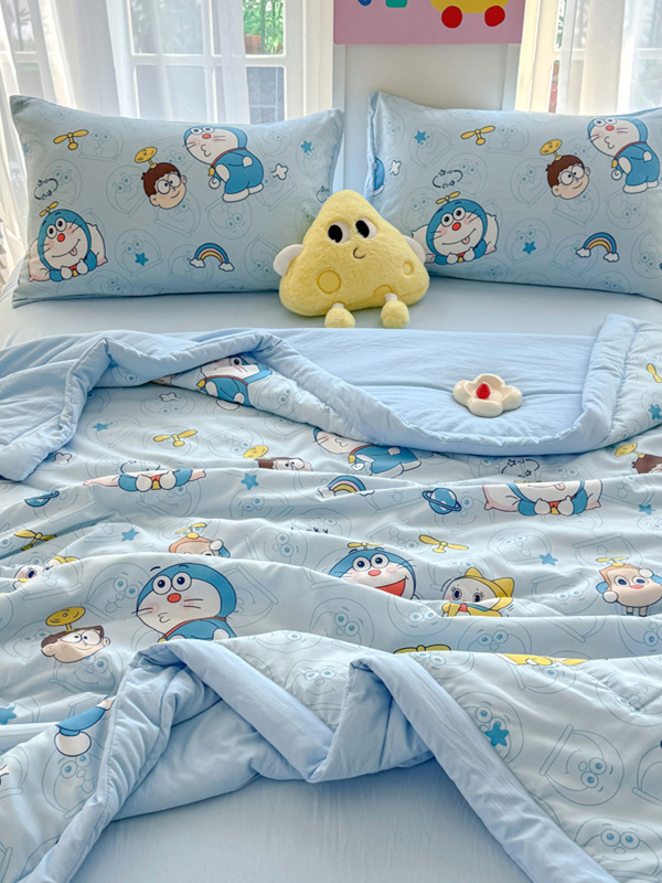 クラスA ドラえもん 夏用 薄手 夏用 クールキルト 4点セット 洗濯機で洗える エアコンキルト ドラえもん 寮 シングル サマーキルト