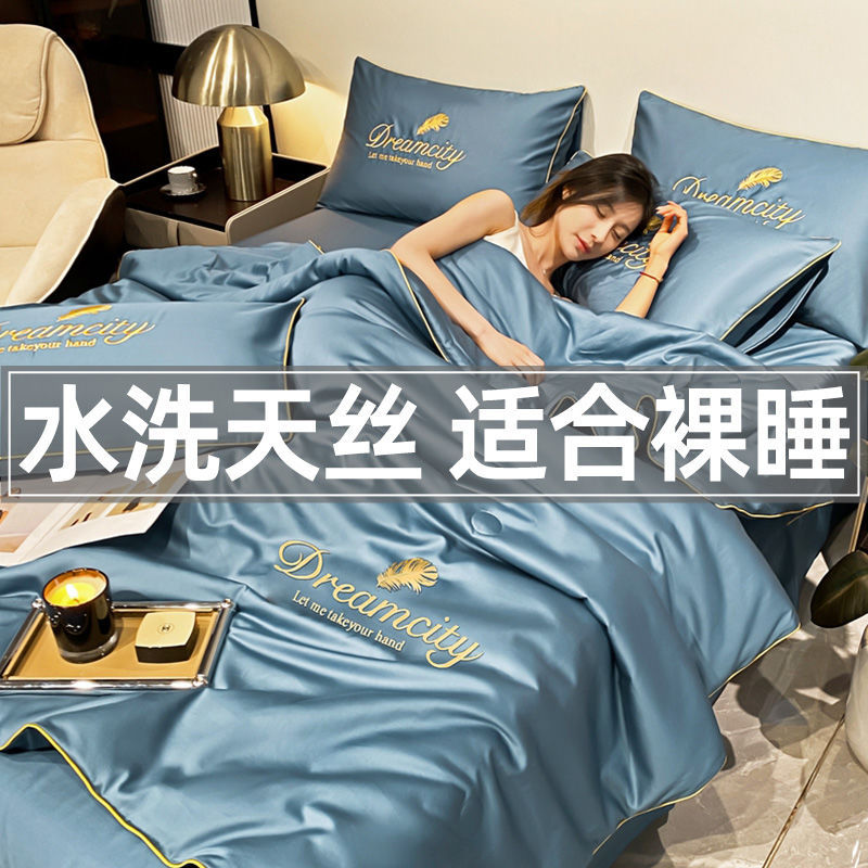夏光高級シルク 20% 夏クールキルト夏裸睡眠アイスシルク洗えるリヨセル空調キルト 4 点セット