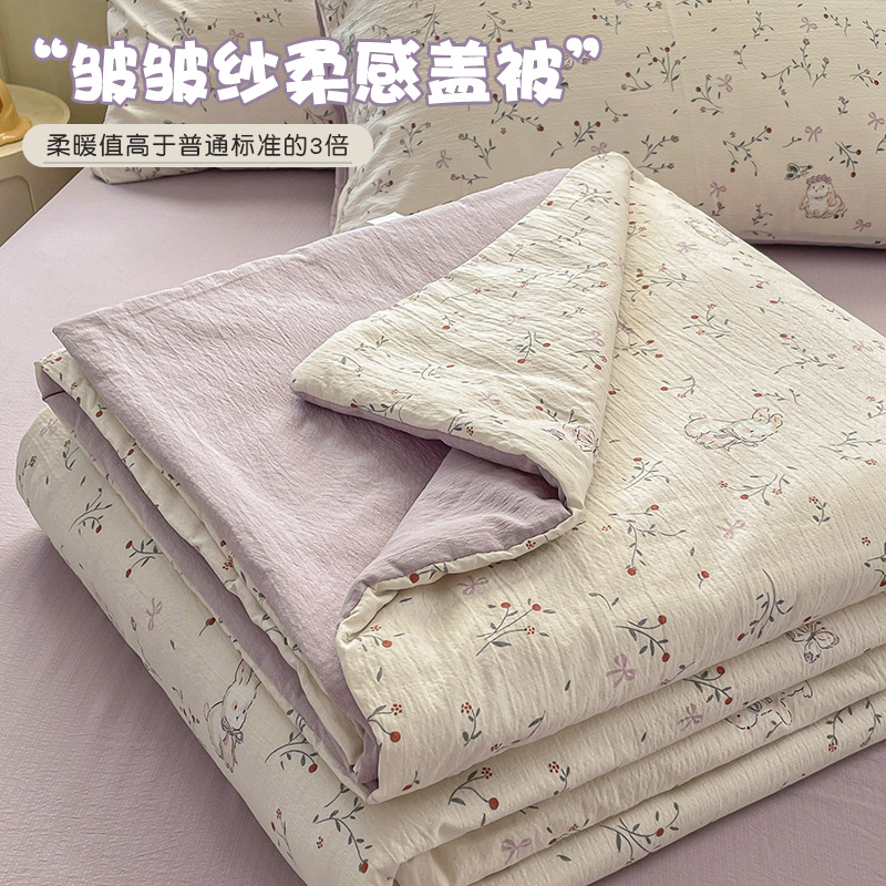 2025新型シワ糸夏は4セットのエアコンで学生寮のシングル布団夏は涼しくて洗濯できる