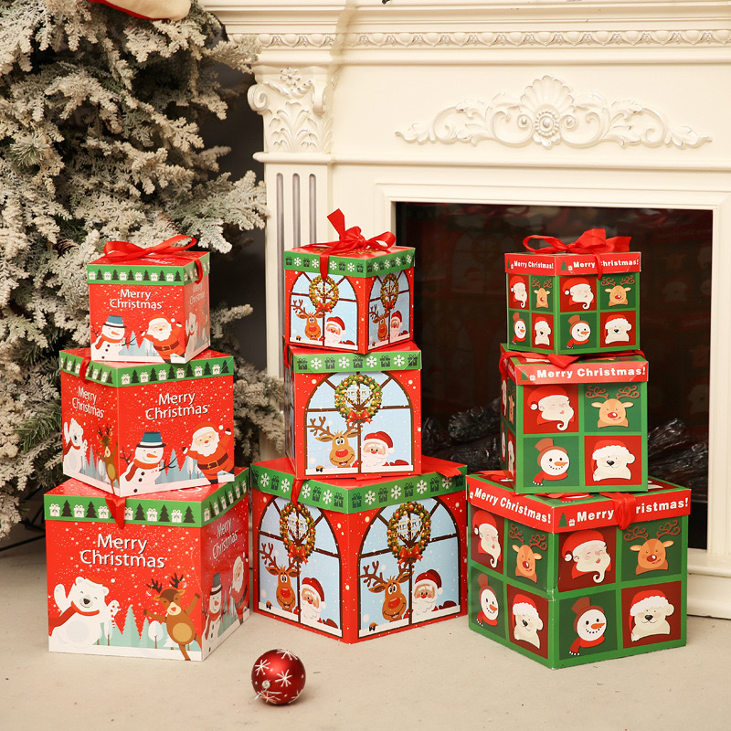 クリスマスの装飾クリスマスイブのリンゴの箱のキャンディーの子供の贈り物の果物の店の幼稚園のシーンの配置の道具