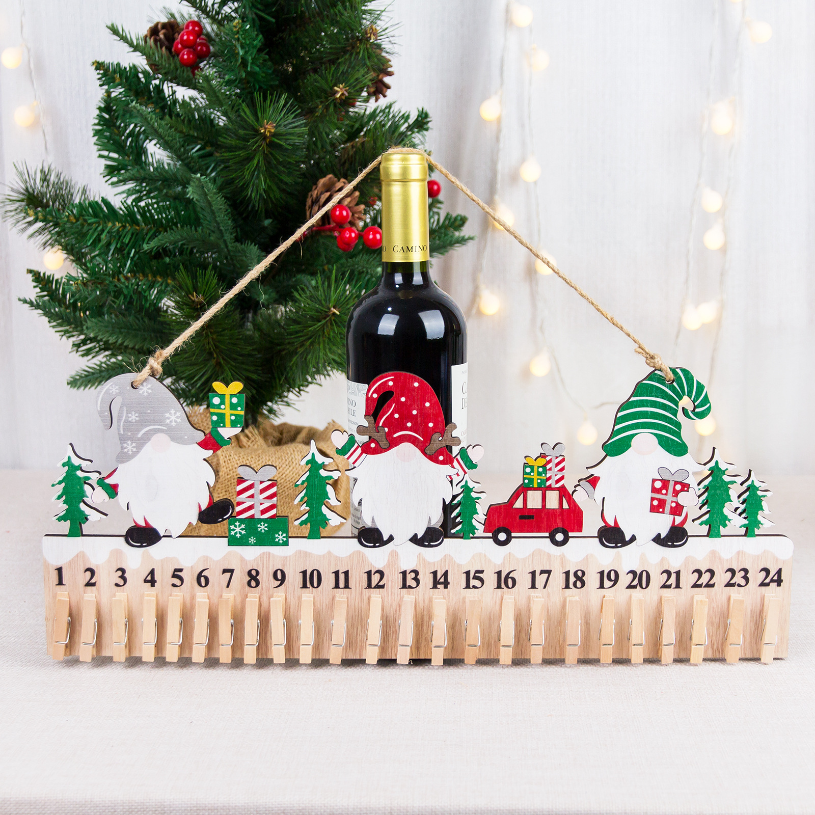 新しいクリスマス装飾品木製クリスマスカウントダウンカレンダー看板木製クリップペンダント顔なし老人ペンダント