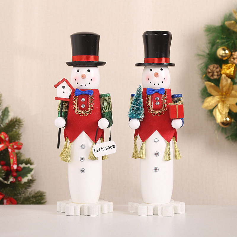 卸売りのクリスマスの装飾品の木製の黒い帽子の雪だるまのくるみ割り人形のデスクトップの装飾の置物のセットの2つの代理