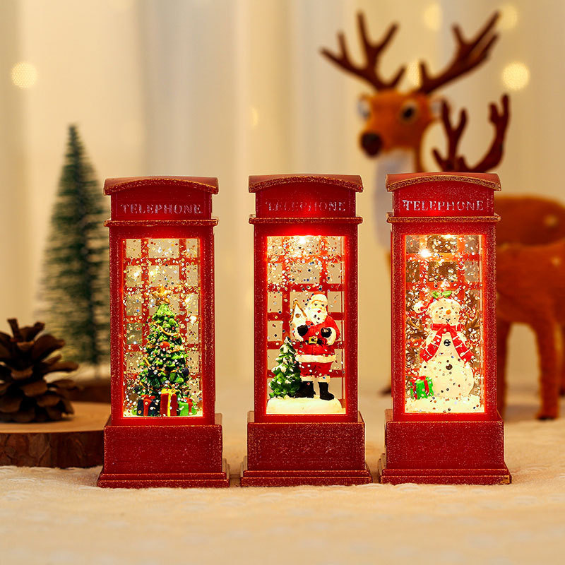 クリスマス公衆電話ボックス雪だるまオルゴール水晶玉プレゼントサプライズ置物雰囲気シーン装飾道具