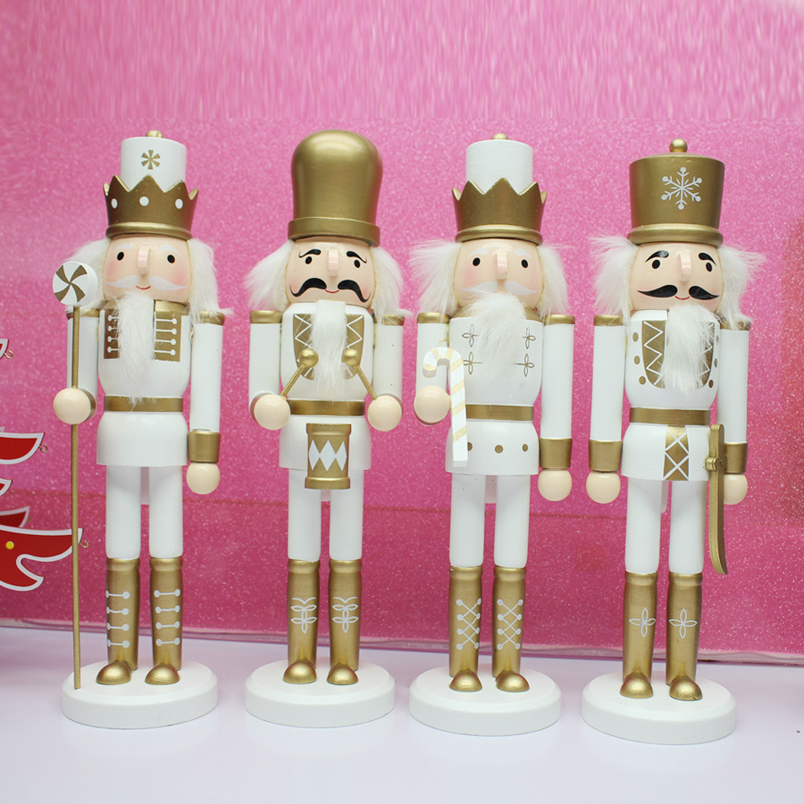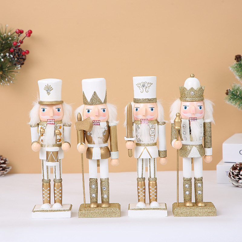 クリスマス装飾品の新型30cm金白色木製胡桃クリップ人形のデスクトップ装飾品