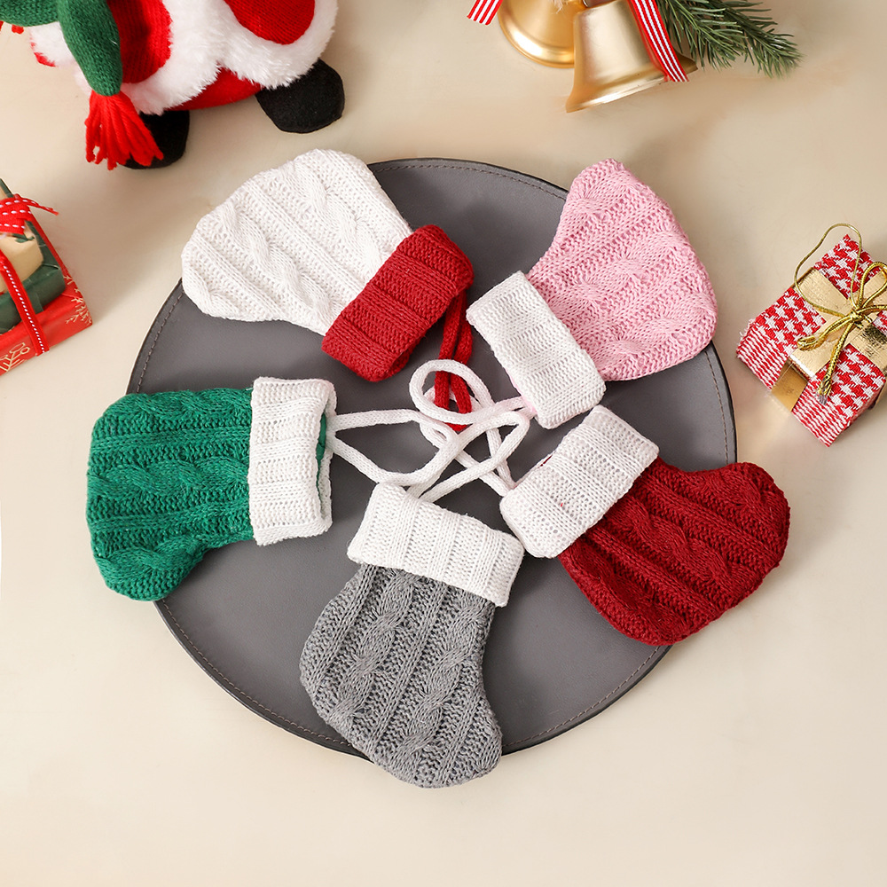 新しいクリスマス装飾ミニ小さなカラフルなニットソックスクリスマスツリー吊り下げ装飾レストランのナイフとフォークセットアレンジメント