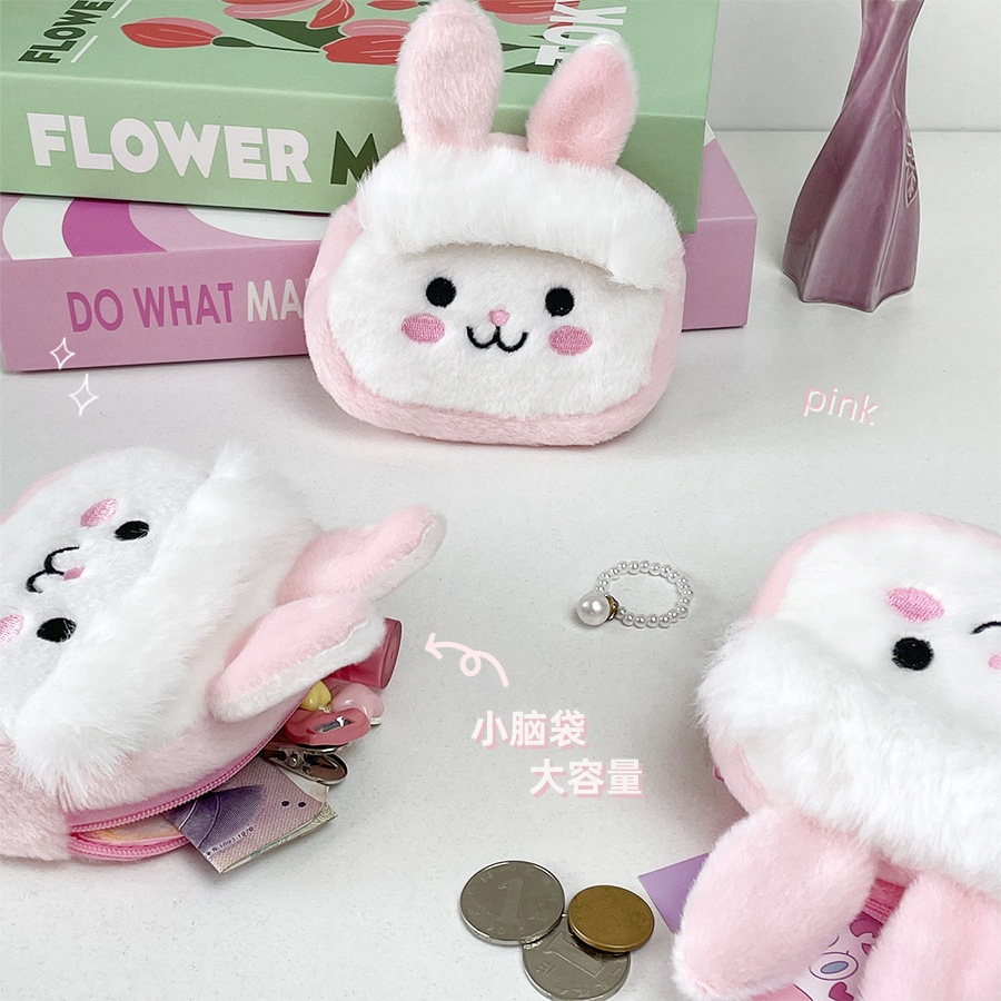 かわいいピンクのウサギのぬいぐるみの小銭入れの口紅のデータラインの収納袋の少女の心のかばんのペンダントの子供の贈り物の卸売り