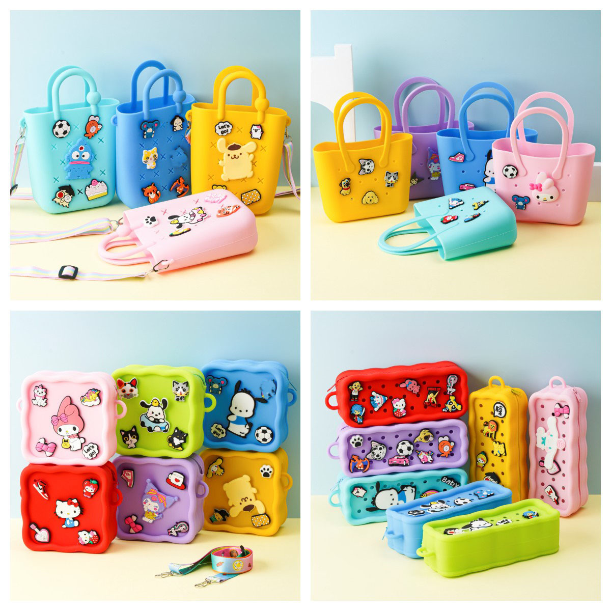 新しい子供の漫画の穴の多いシリコンの収納袋のPVCの柔らかいゴムのDIYの四角形の0財布の萌えの面白いかわいい筆の袋