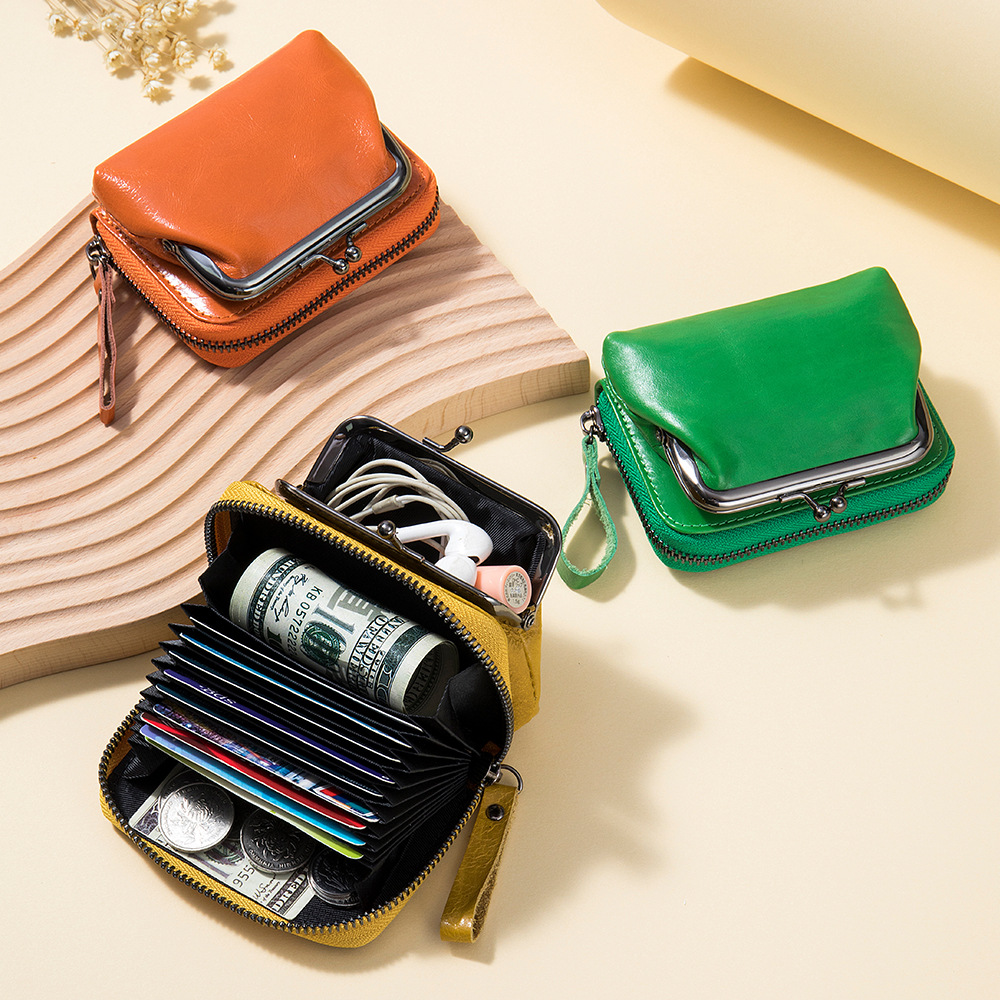 工場直販本革財布レディースショート多機能ジッパーレディース財布大容量カードホルダーレトロ小銭入れ