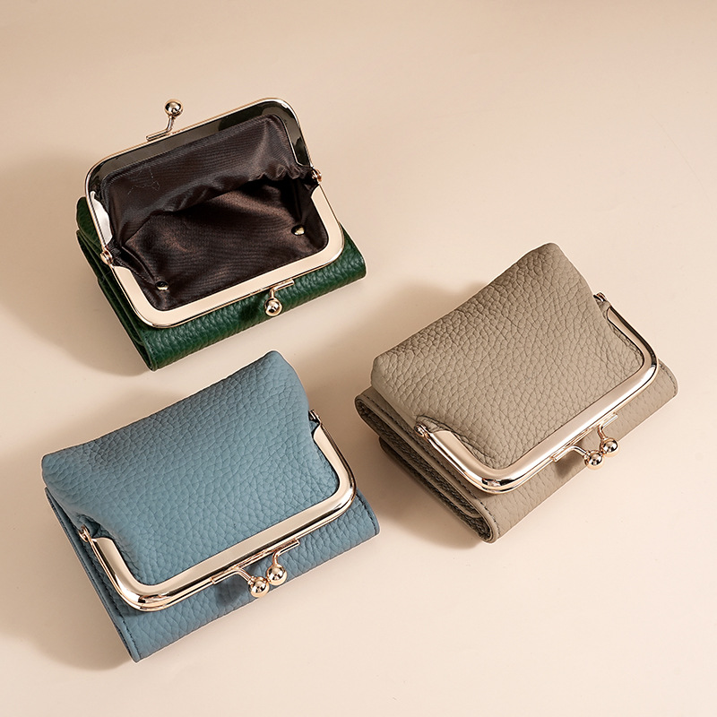 ソフト牛革ショート折りたたみ財布女性のための多用途 2025 新しい本革クリップ大容量ダブルマネー財布卸売
