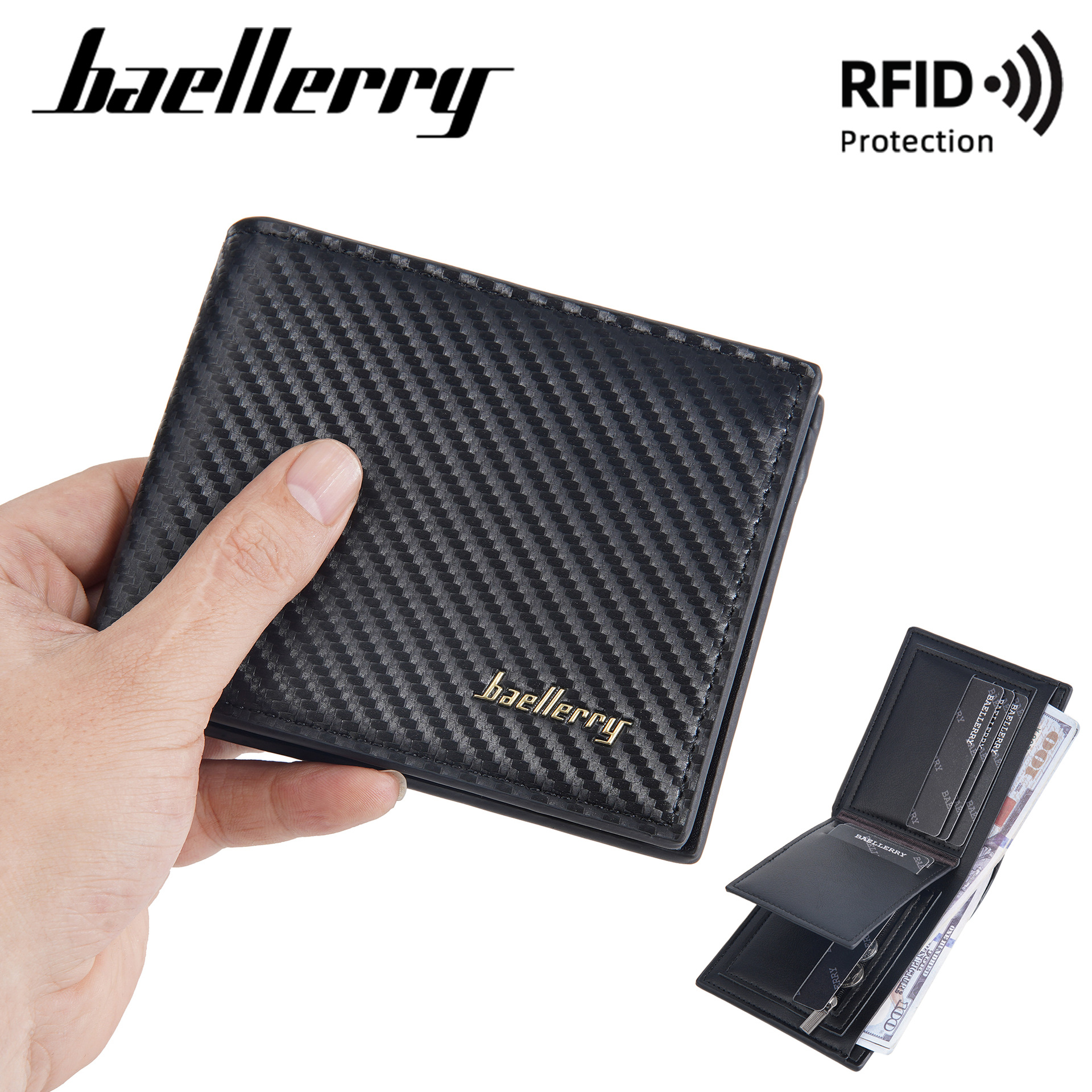 財布新しいPU炭素繊維メンズ高級感RFID磁気防止男性ショートコインジッパーバッグ財布ウォレット