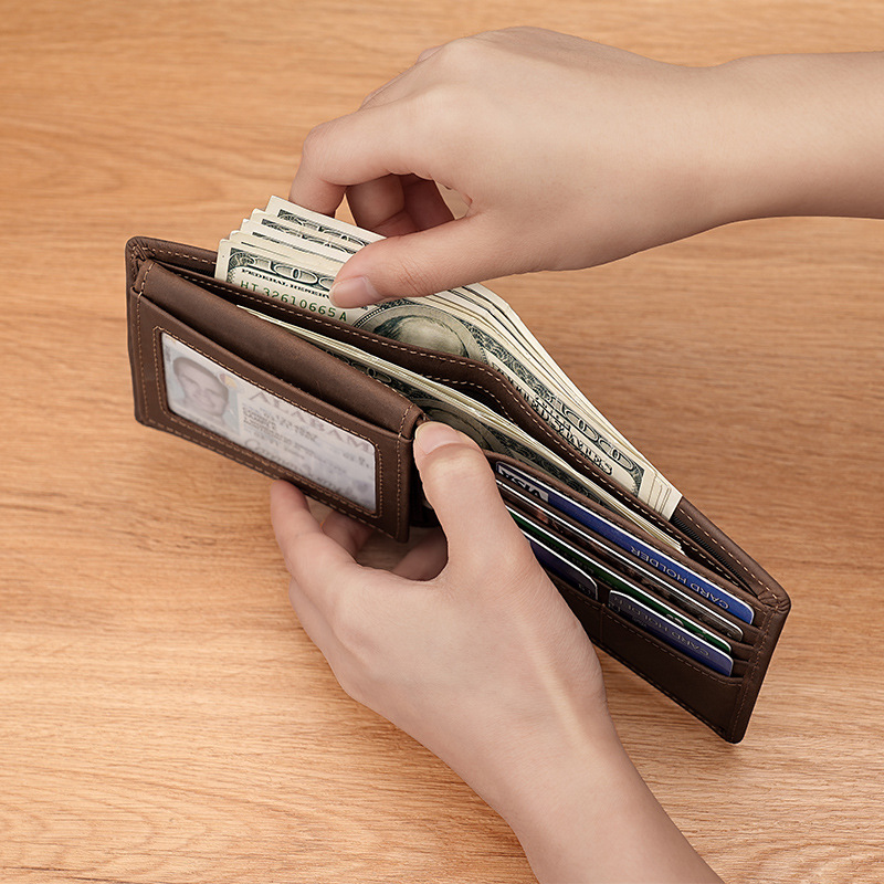 2024新型狂馬皮財布男性財布真皮欧米牛革カードクリップ盗難防止ブラシドル財布卸売り