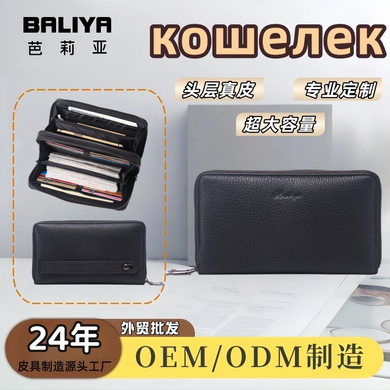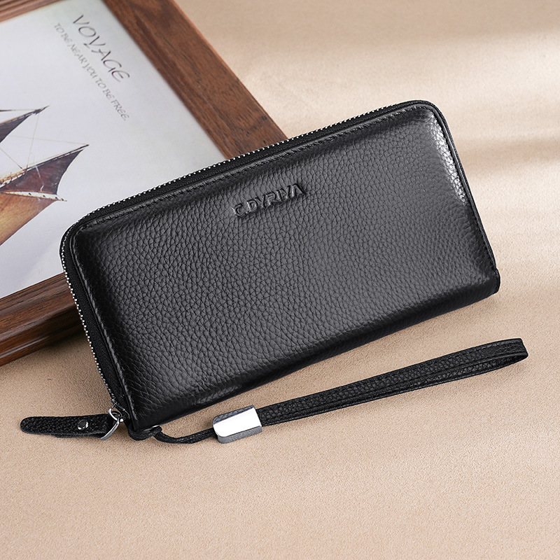 クロスボーダー新品メンズ財布ロングレザージッパー財布トップ層牛革ビジネスハンドバッグ大容量革クリップ