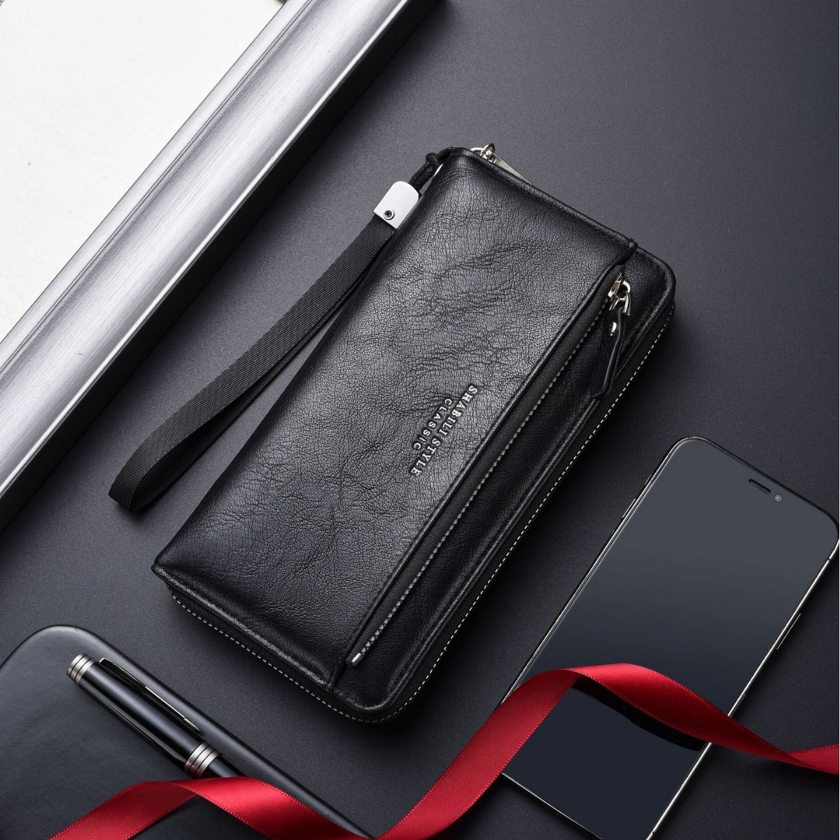 ジッパーのハンドバッグ男性ファッションブランド男性携帯電話バッグ大容量ビジネス長財布シンプルな男性土カジュアルバッグ