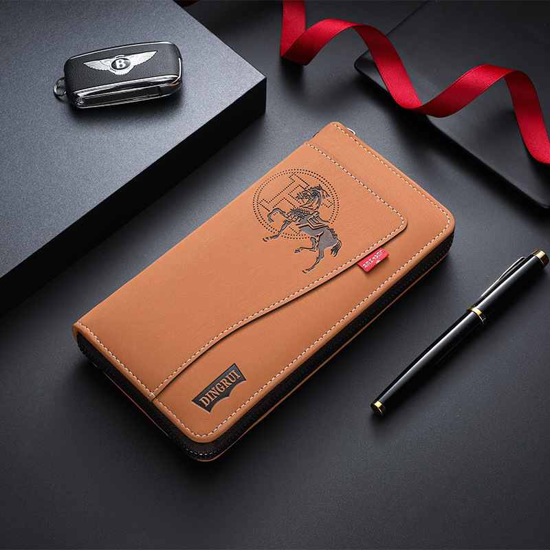 ビジネスレトロメンズロングレザーカッチバッグ、大容量、耐摩耗性、マルチカードスロット、ジッパー付きメンズウォレット、レトロスタイル