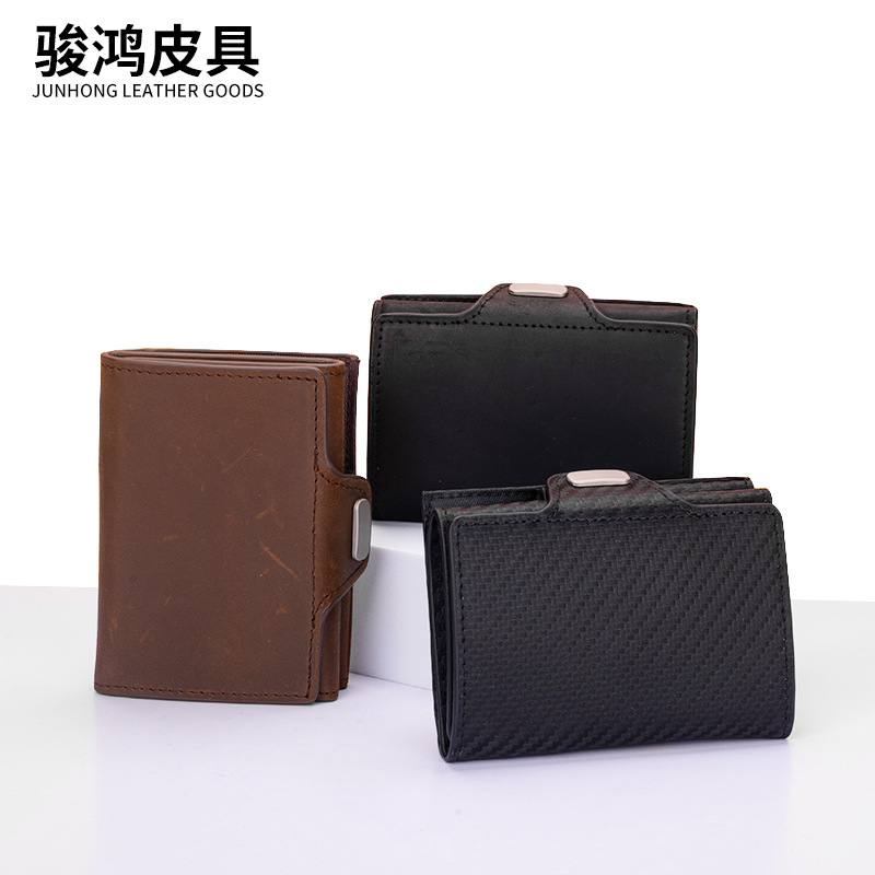 高級自動カードホルダー大容量 70% off スタック財布メンズレトロカーボンファイバー小銭入れ在庫あり
