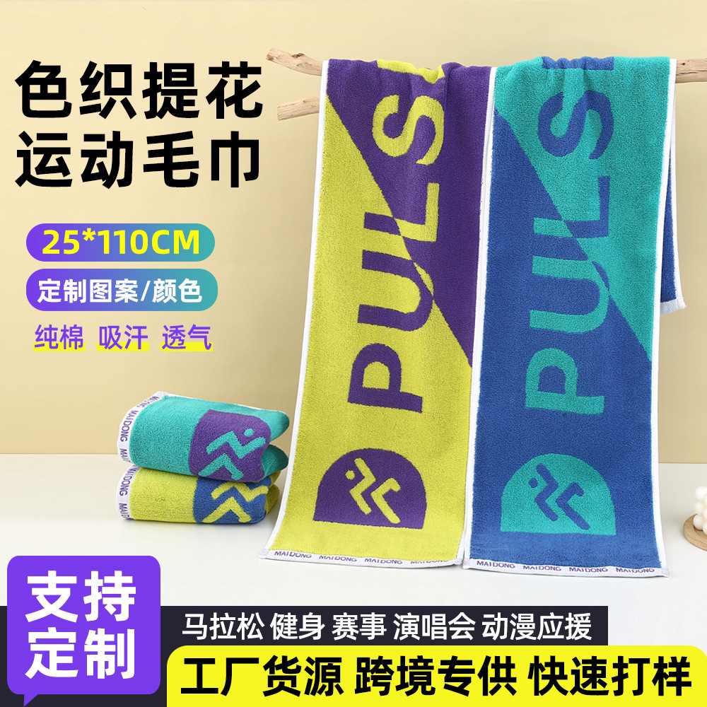色織純綿運動タオル卸売り25*110延長綿綿フィットネスマラソンタオルランニングタオルカスタマイズ