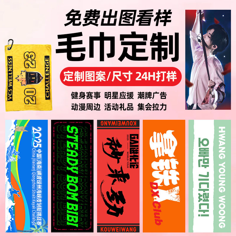 プリントスポーツタオル吸汗タオル速乾ジム来図スター応援来図LOGO手振り旗卸売り
