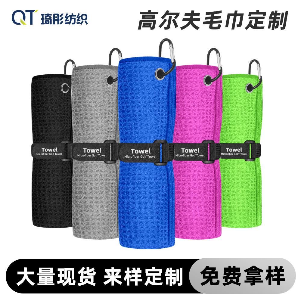 ゴルフタオル、登山用バックル付き、穴あきワッフル織りスポーツタオル、マイクロファイバー印刷ゴルフタオル卸売