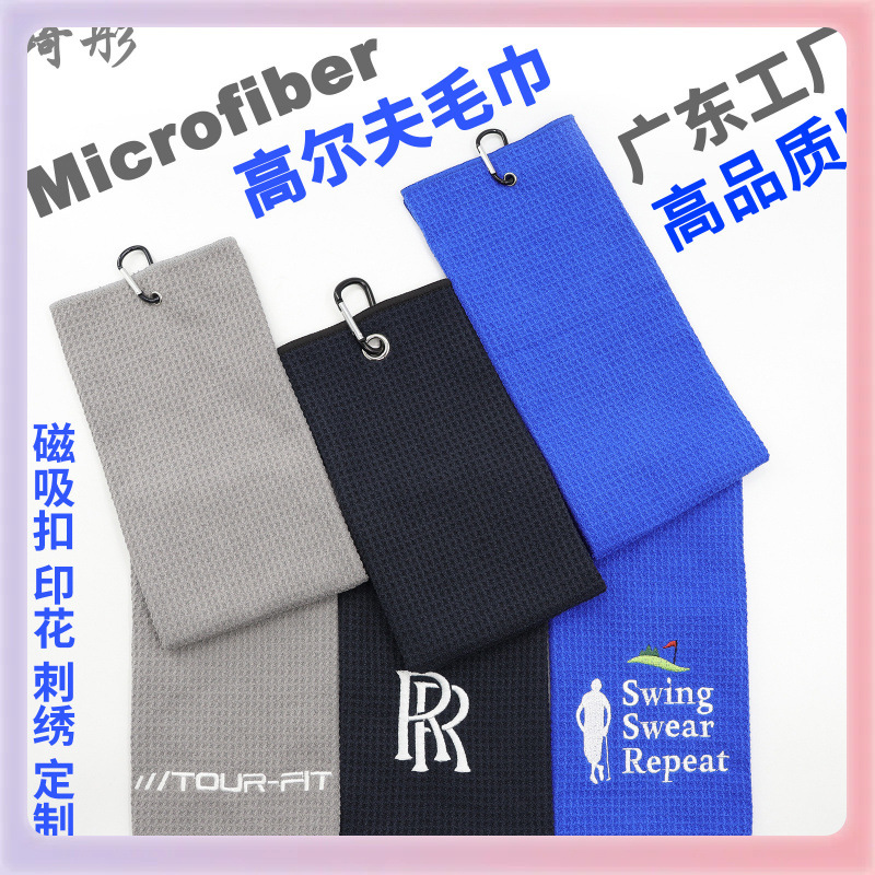 ゴルフワッフルタオルゴルフポールマグネットタオルとリングマイクロファイバー