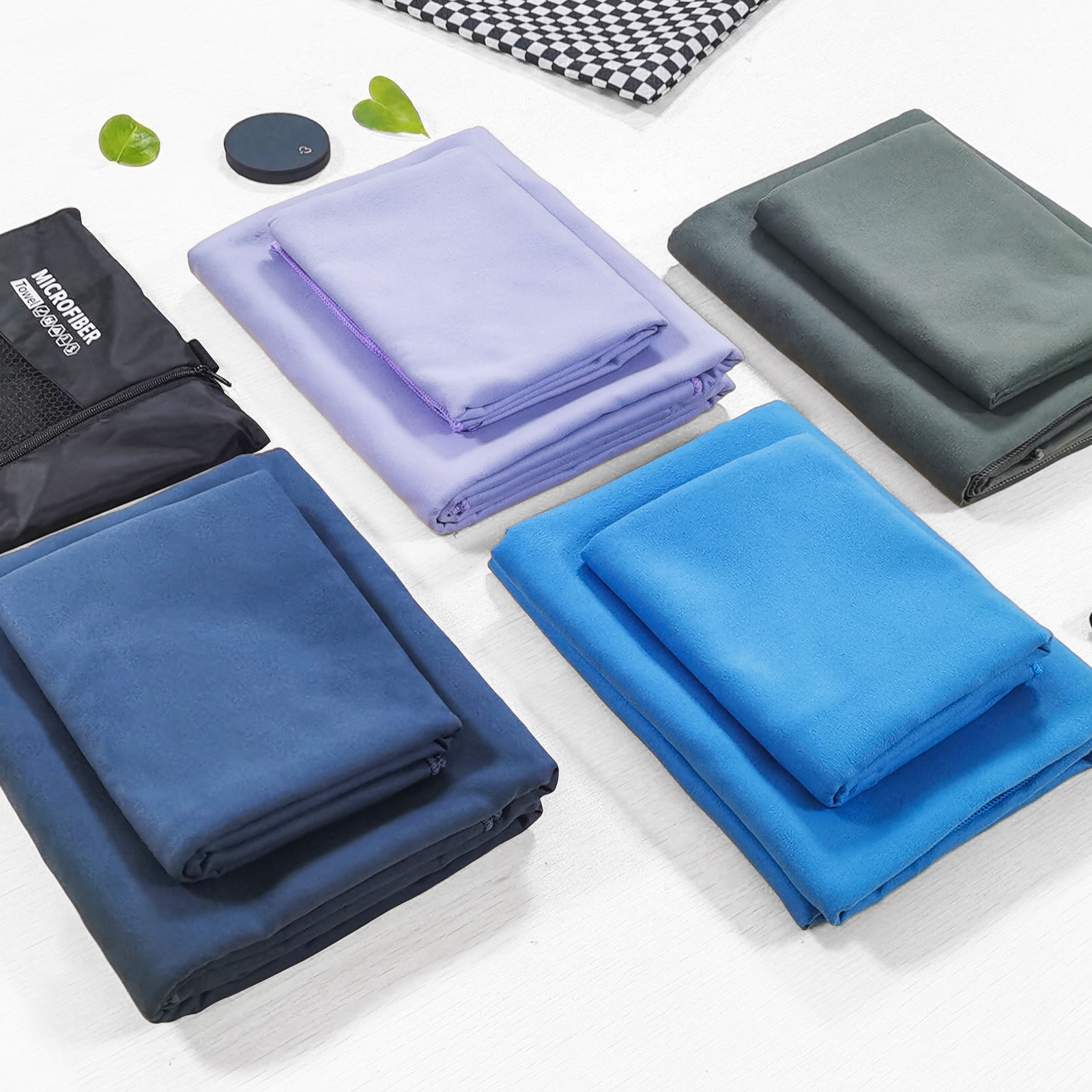 152X76cm角網袋入り無地速乾タオル 工場直販 両面フリース速乾タオル