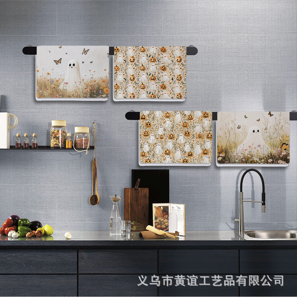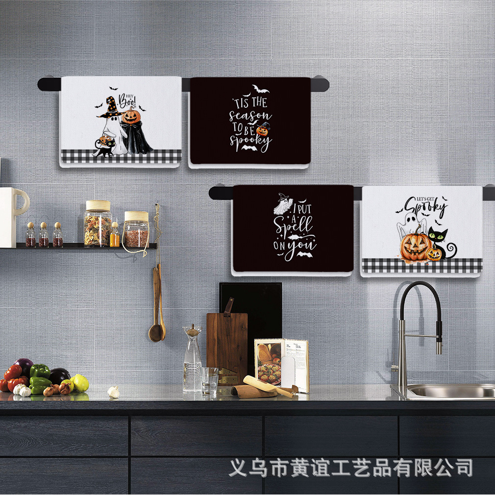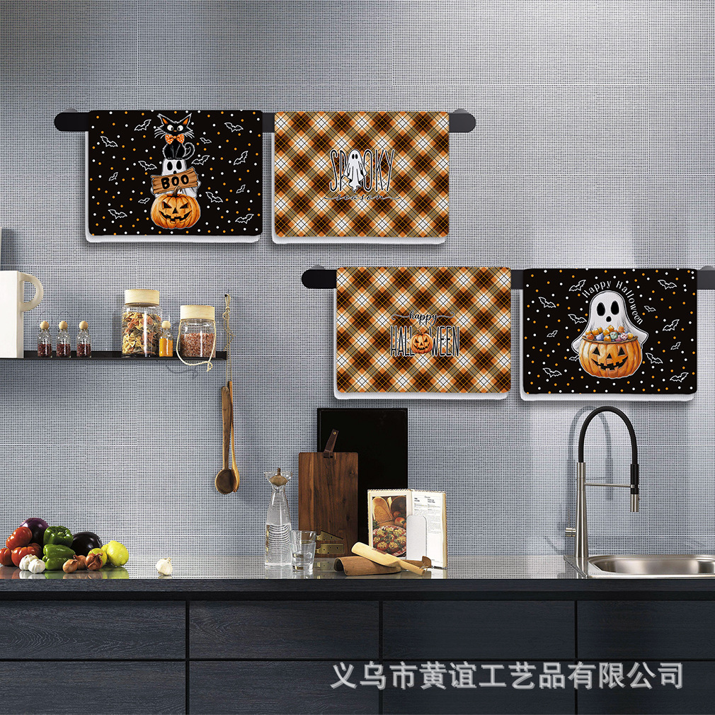 アマゾンの人気ハロウィーンシリーズ極細繊維タオルクロスボーダープリントホームキッチンタオルメーカー直販