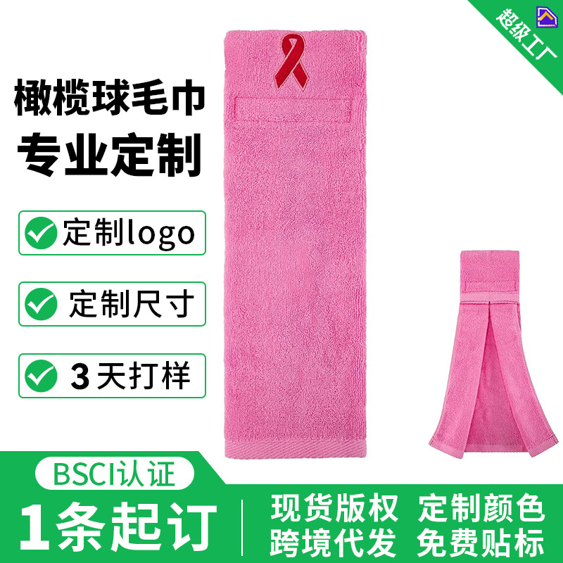 クロスボーダーベルクロスポーツタオルラグビーフットボール吸水性綿刺繍ピンクリボンラグビータオル工場