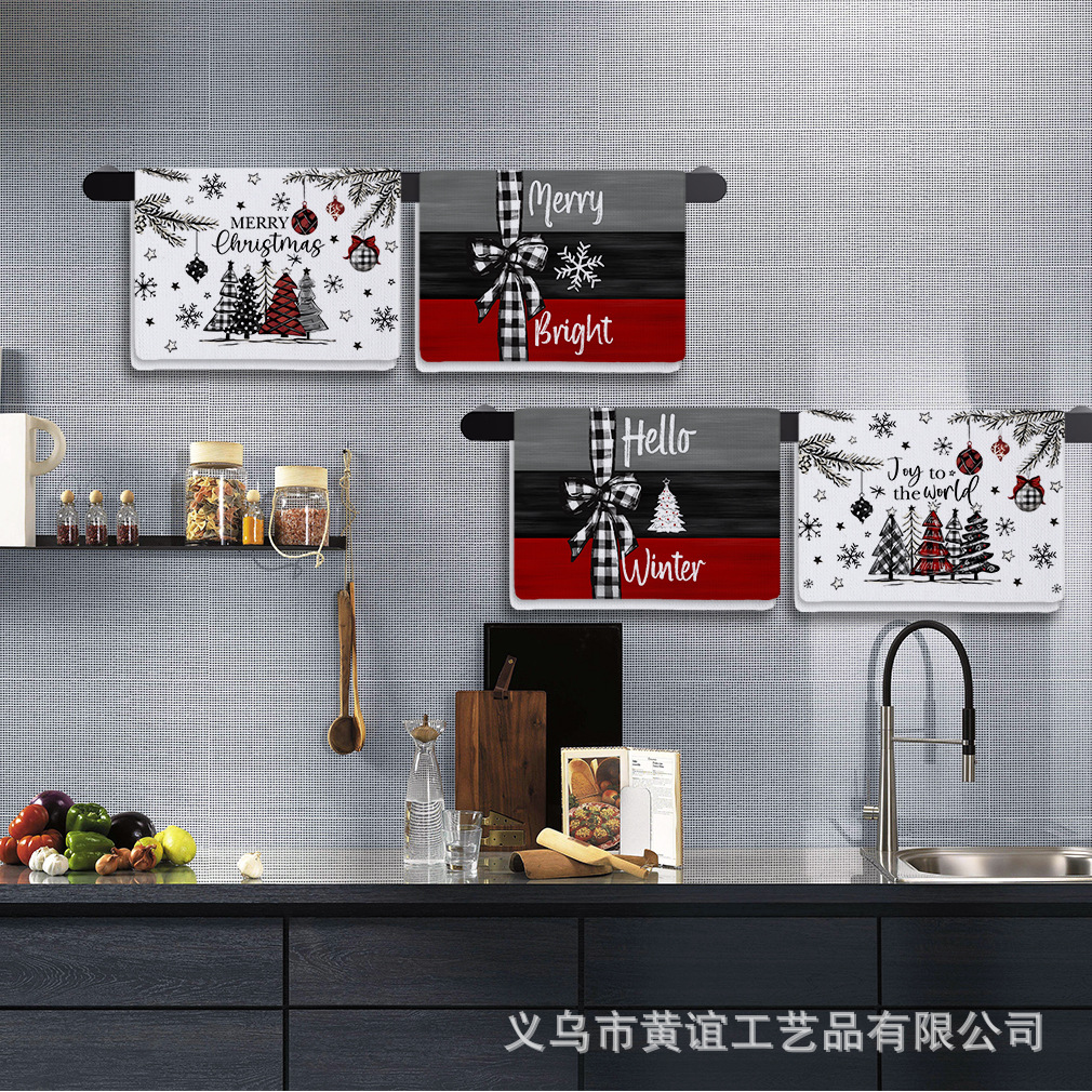 アマゾン2024クリスマスシリーズ極細繊維タオルクロスボーダープリントホームキッチンタオルメーカー直販