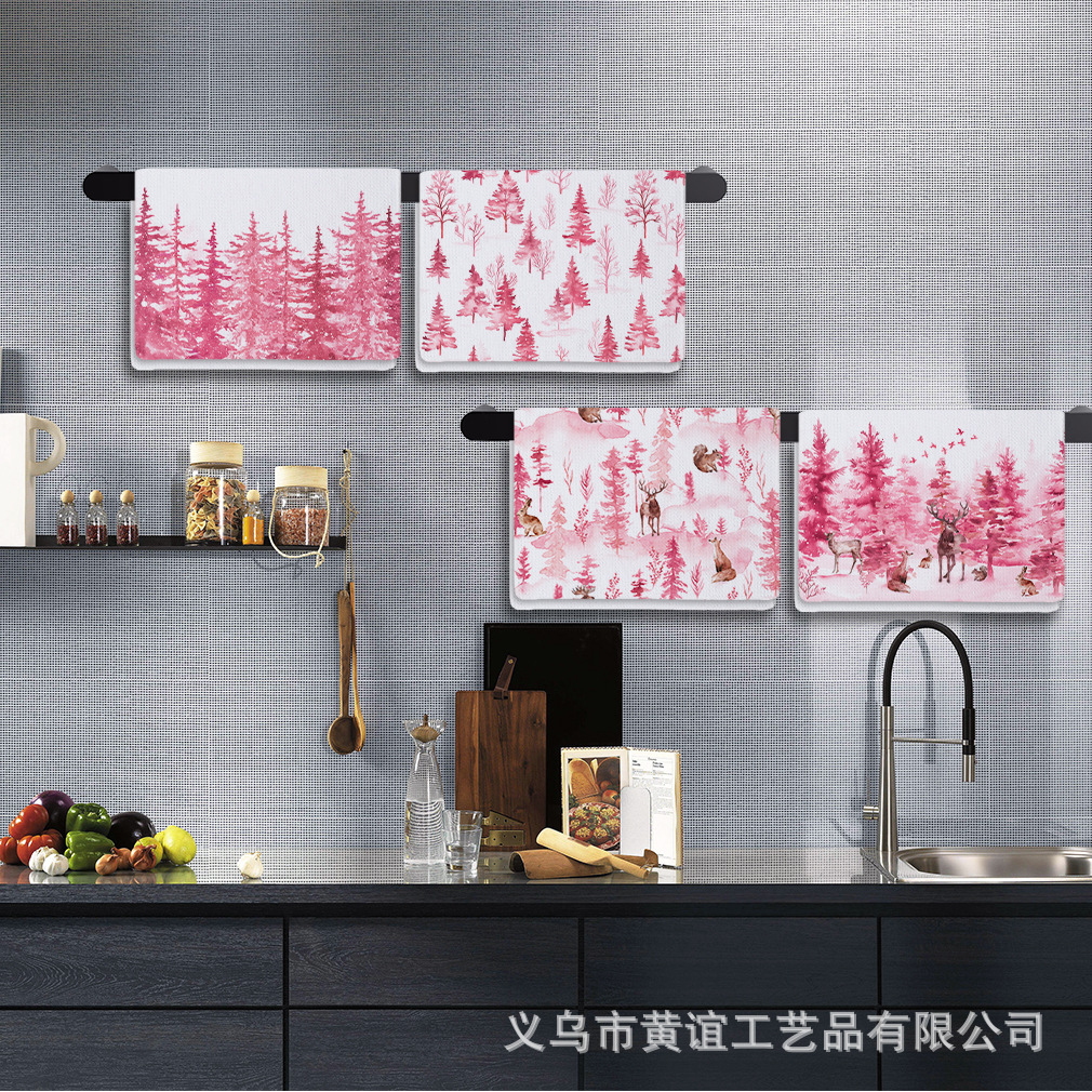 アマゾンクリスマスシリーズピンクの森ヘラジカタオルクロスボーダープリントホームキッチンタオルメーカー直販