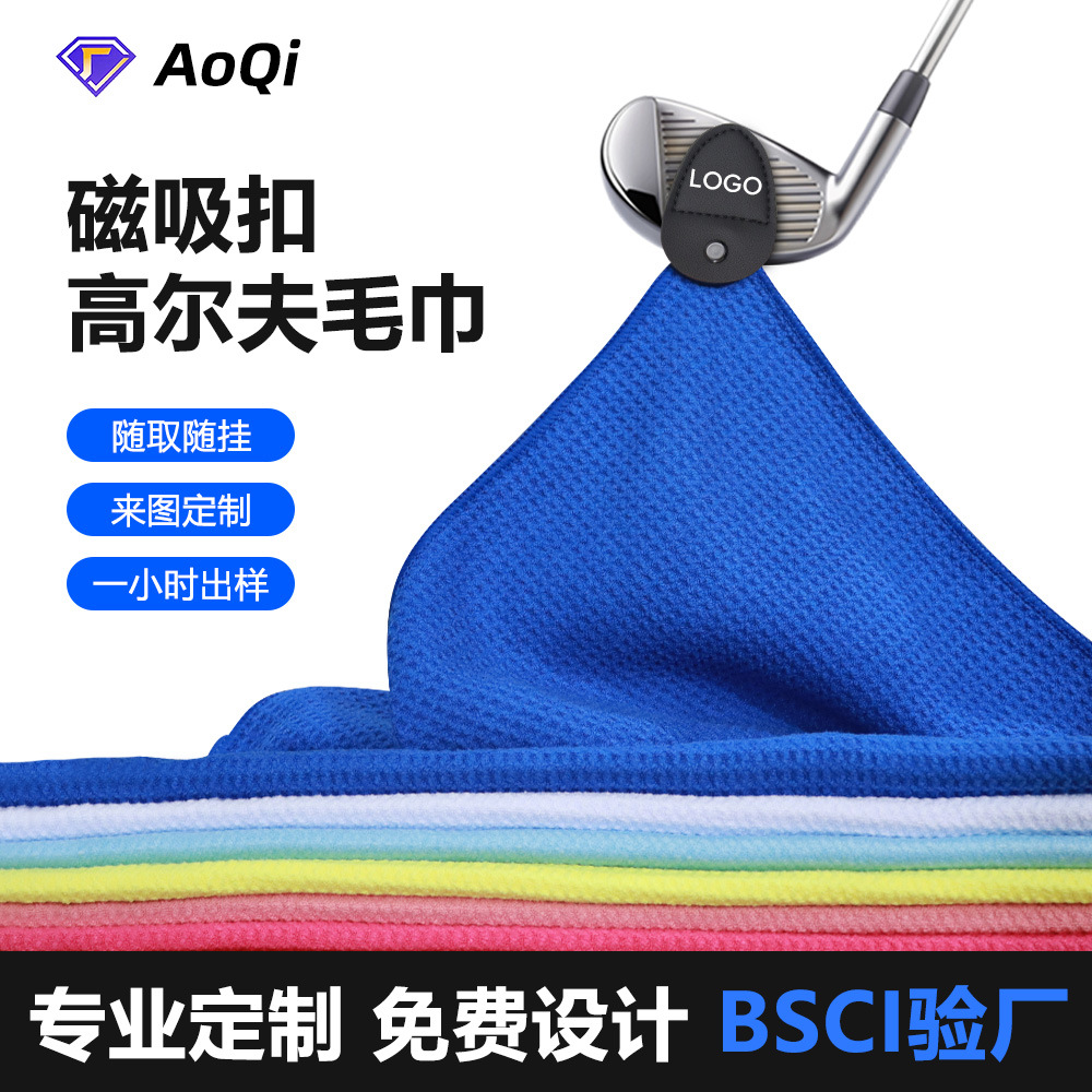 クロスボーダー極細繊維レザーカバーマグネットゴルフタオル強いマグネットワッフルボール拭きタオルデジタルプリント刺繍