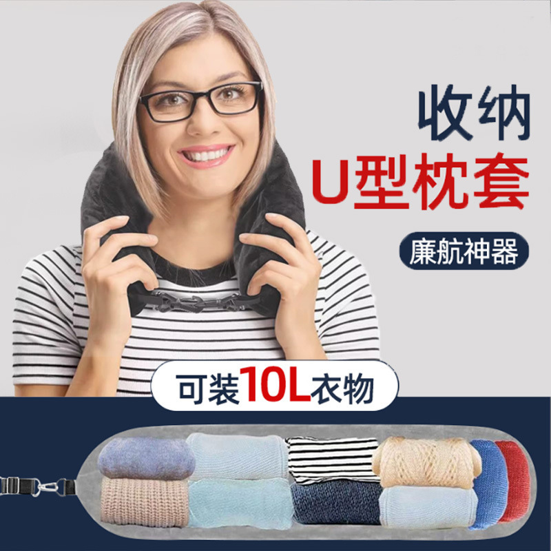 国境を越えた人気の旅行用U字型枕、詰め替え可能な衣類、荷物枕カバー、柔らかいぬいぐるみ、多機能枕