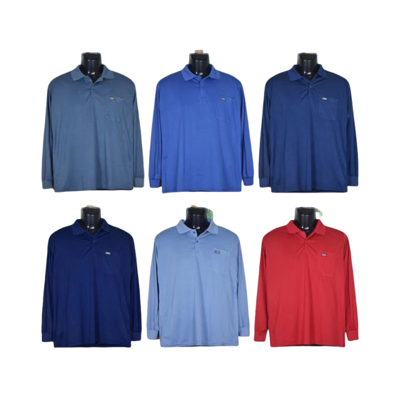 春秋の中で年配の男性の純色の襟の長袖のtシャツの大きいサイズの老人のゆったりしている上着の露店は商品の供給源を売ります。