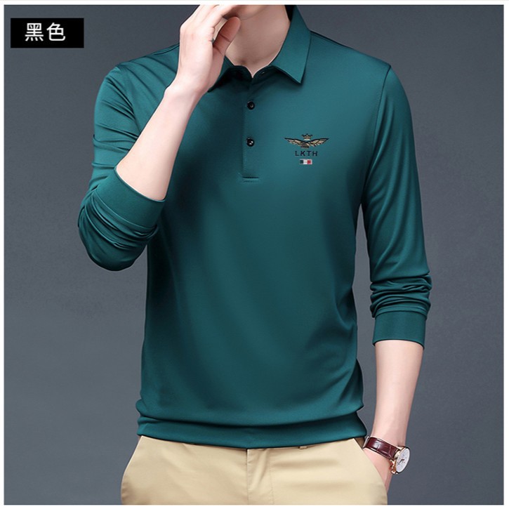 2022新型中年男性長袖tシャツ秋プリントアイスポロシャツ純色カジュアル上着男性代発