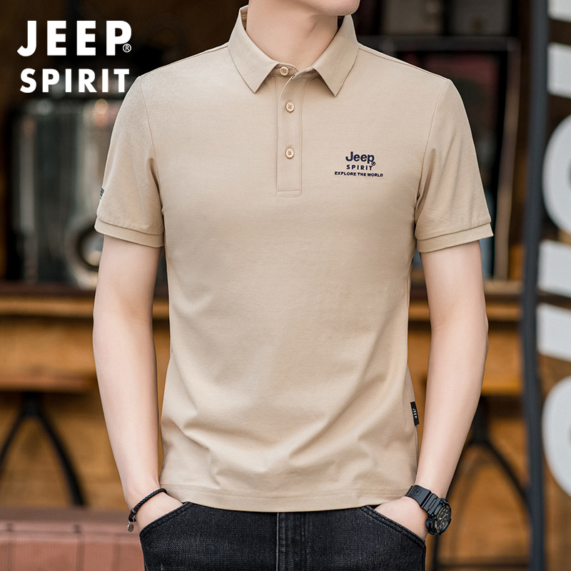 JEEP ジープ 2025 メンズ 春夏新作 ピケサロナ ラペル 五分袖 Tシャツ カジュアル メンズ ポロシャツ 5298