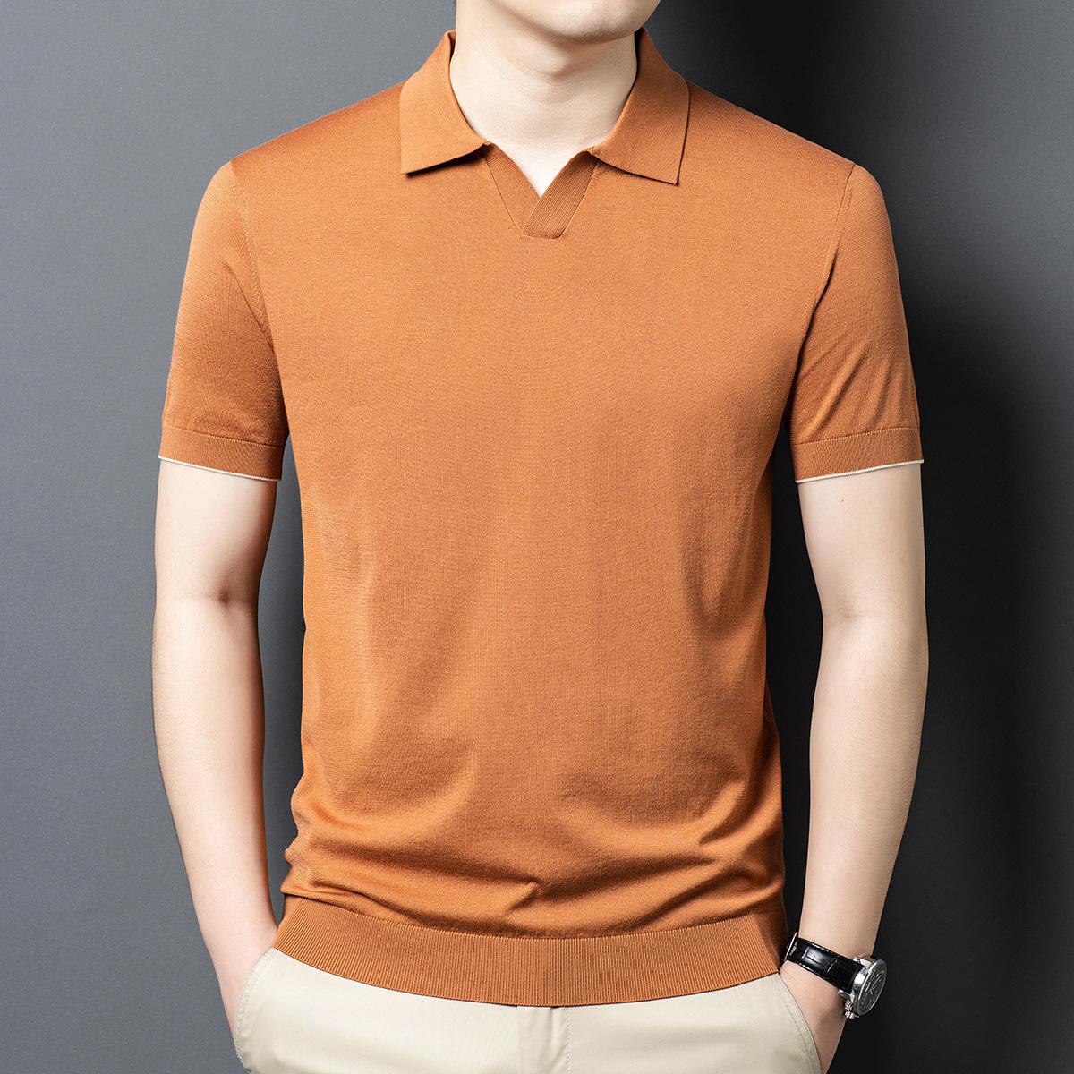 アイス半袖ニットpoloシャツメンズ高级感折り襟ポール夏メンズvネックビジネスカジュアルtシャツメンズ
