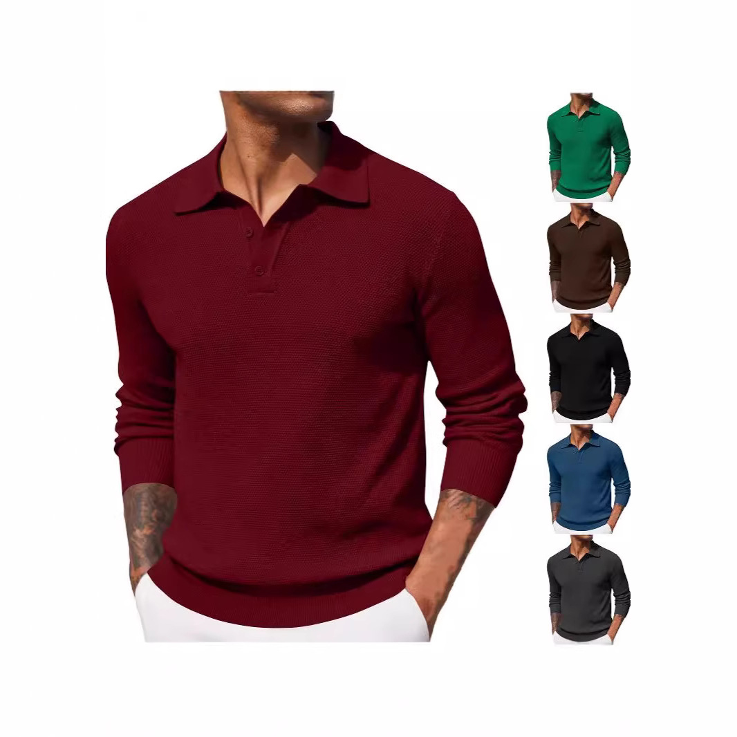 2025 新しいアマゾン貿易メンズワッフルラペルボタン長袖ポロシャツホリデーカジュアル Tシャツ