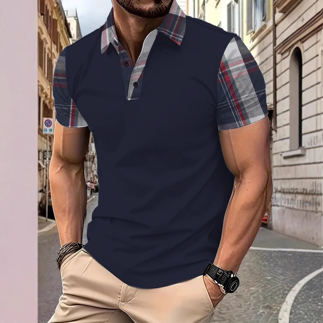 春秋用速乾性アマゾンメンズチェッカーボード柄ポロシャツ、アームジッパー付きスポーツポロシャツ、ジッパー装飾
