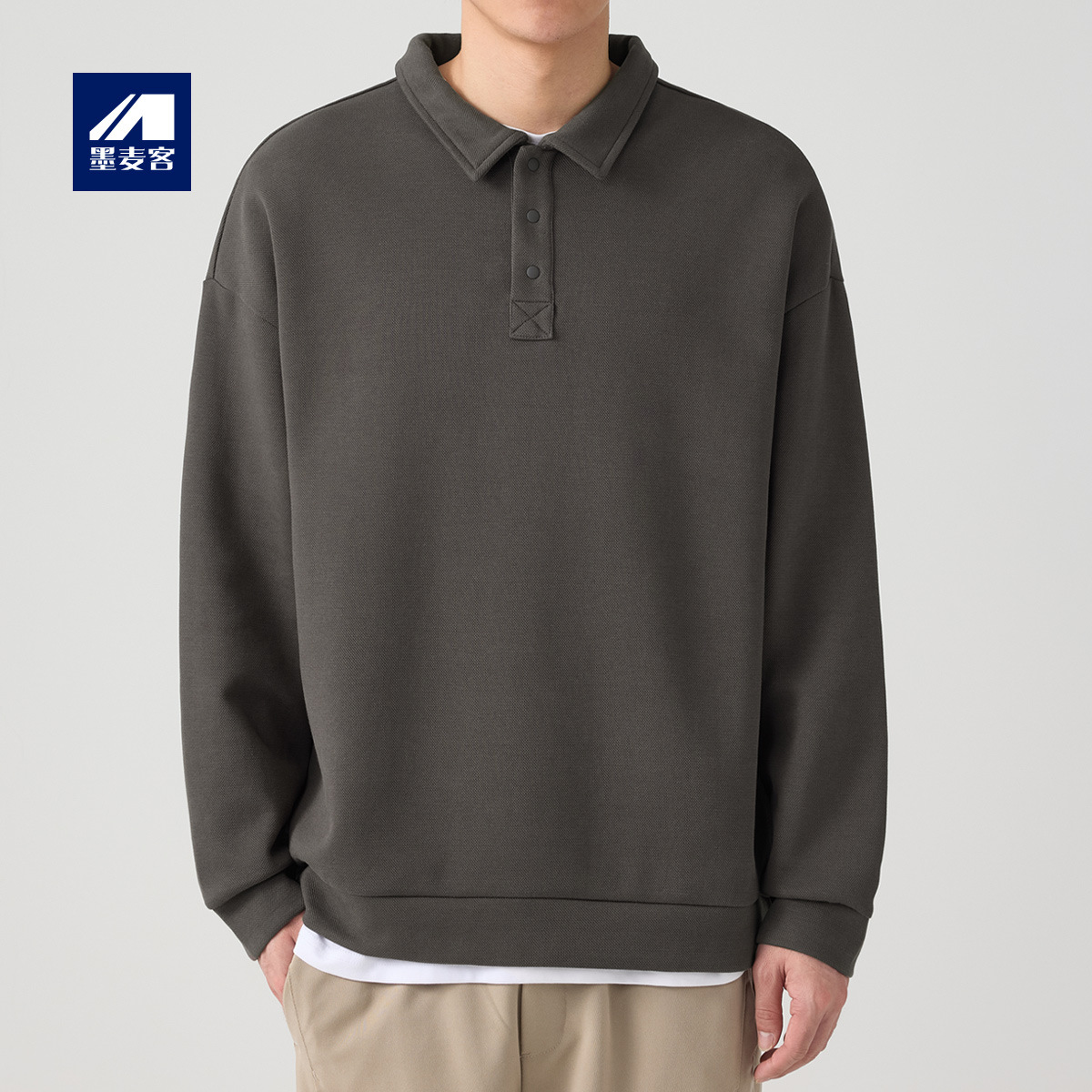 墨麦客320gヘビーウェイト無地ポロシャツメンズ2025秋シンプルゆったりメンズ長袖Tシャツ75091。