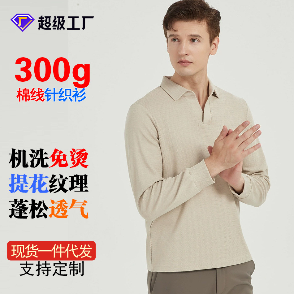 ハイエンド 300 グラムジャカード長袖カモメ襟ノンアイロン通気性カジュアルアウターシルト綿セーターポロシャツ男性用