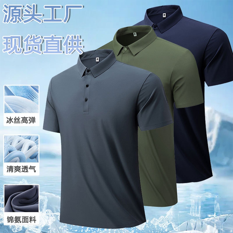アイスシルクシームレス夏メンズ薄手Tシャツクールで軽い高級半袖ビジネスラペル作業服ポロシャツカスタマイズ