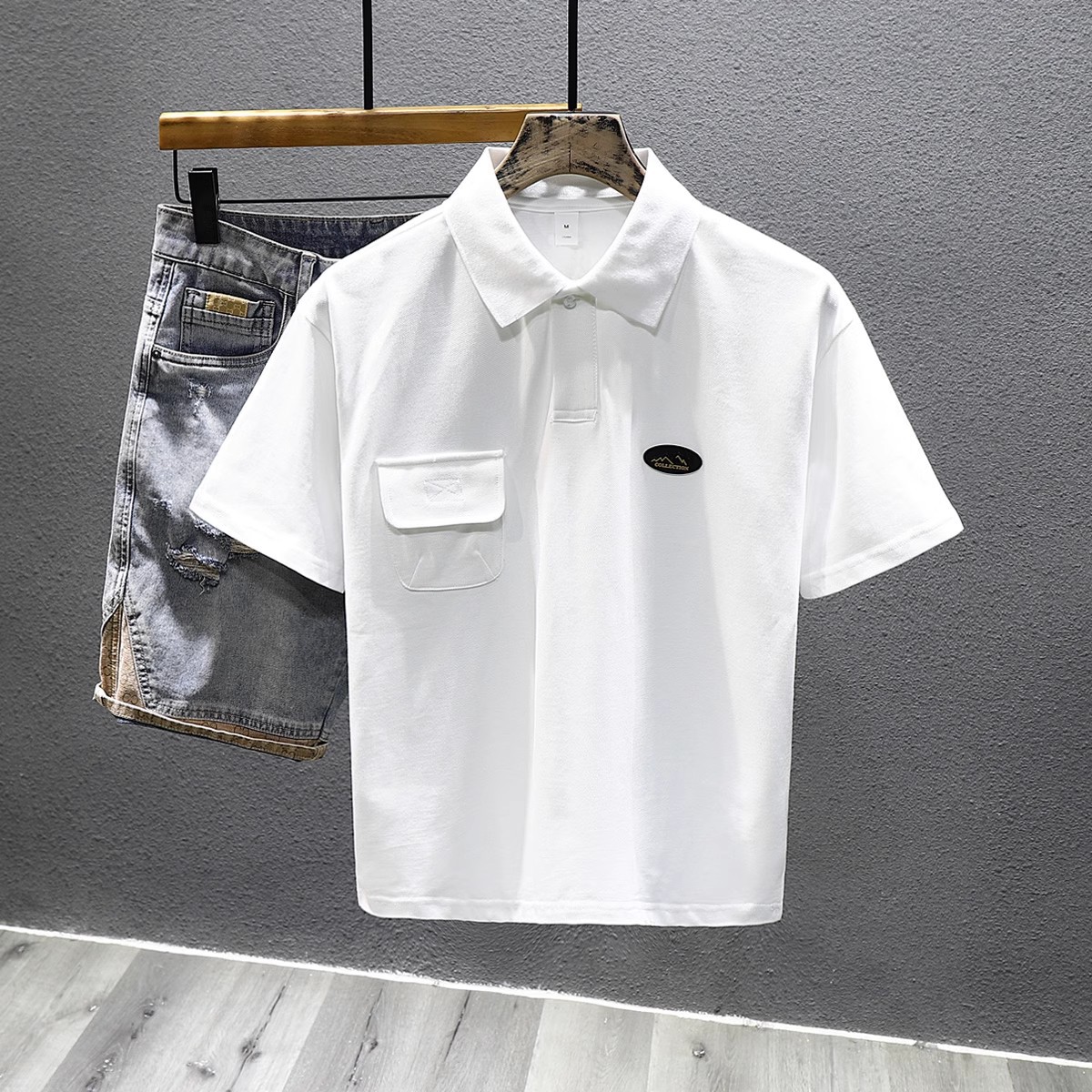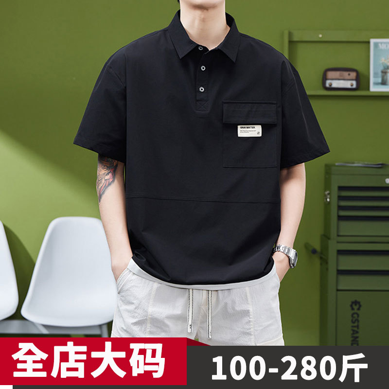 2025春夏の新型重ポンドpoloシャツ半袖tシャツ男性ゆるい大サイズ潮牌襟半袖tシャツ
