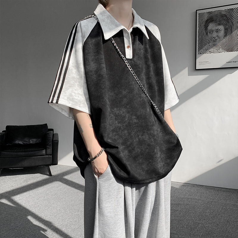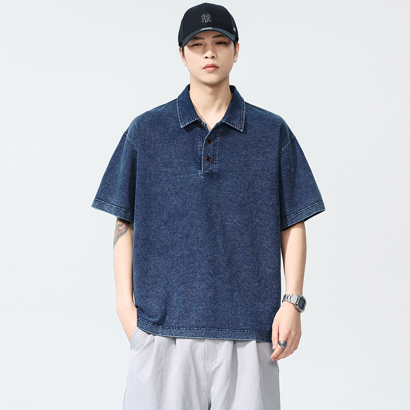 半袖tシャツメンズポロシャツ高级感夏トレンド日系レトロゆったりアメリカン折り襟刺繍トップス