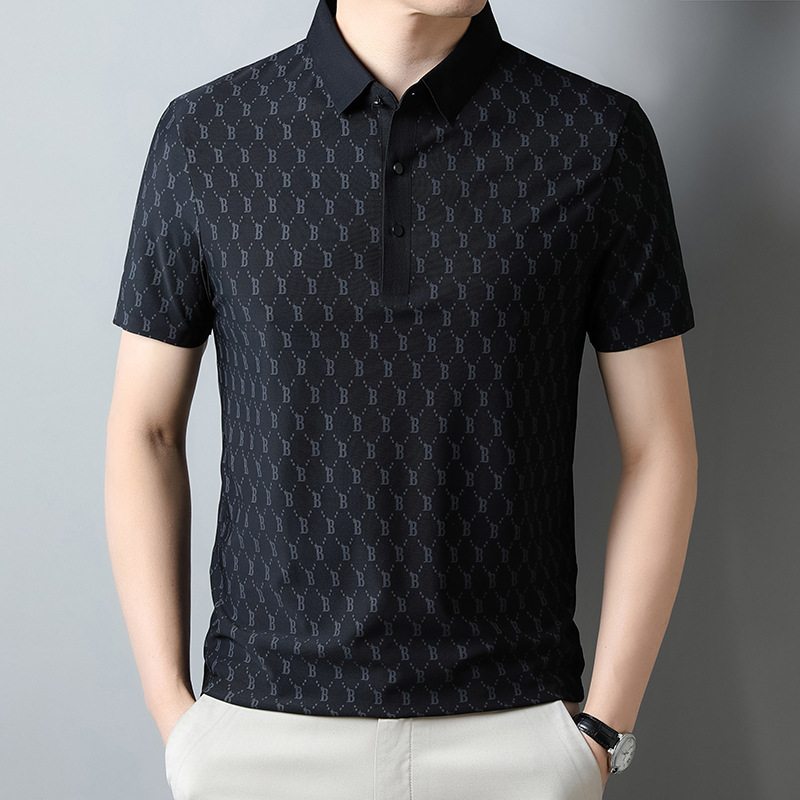 夏プリント Tシャツメンズ半袖ハイエンドビジネス紳士服シャツ襟アイスシルクポロシャツ速乾性トップ 9999