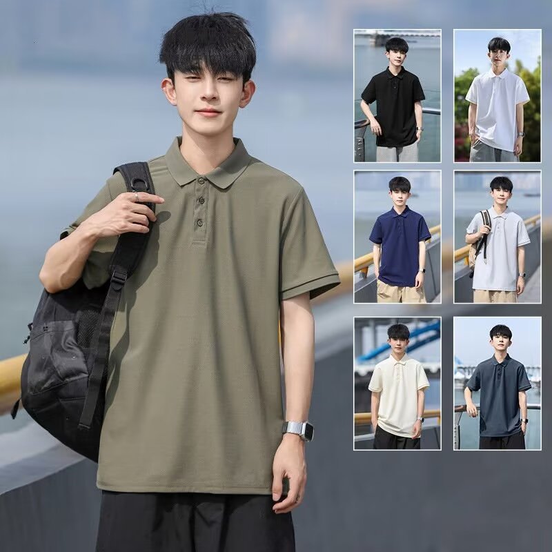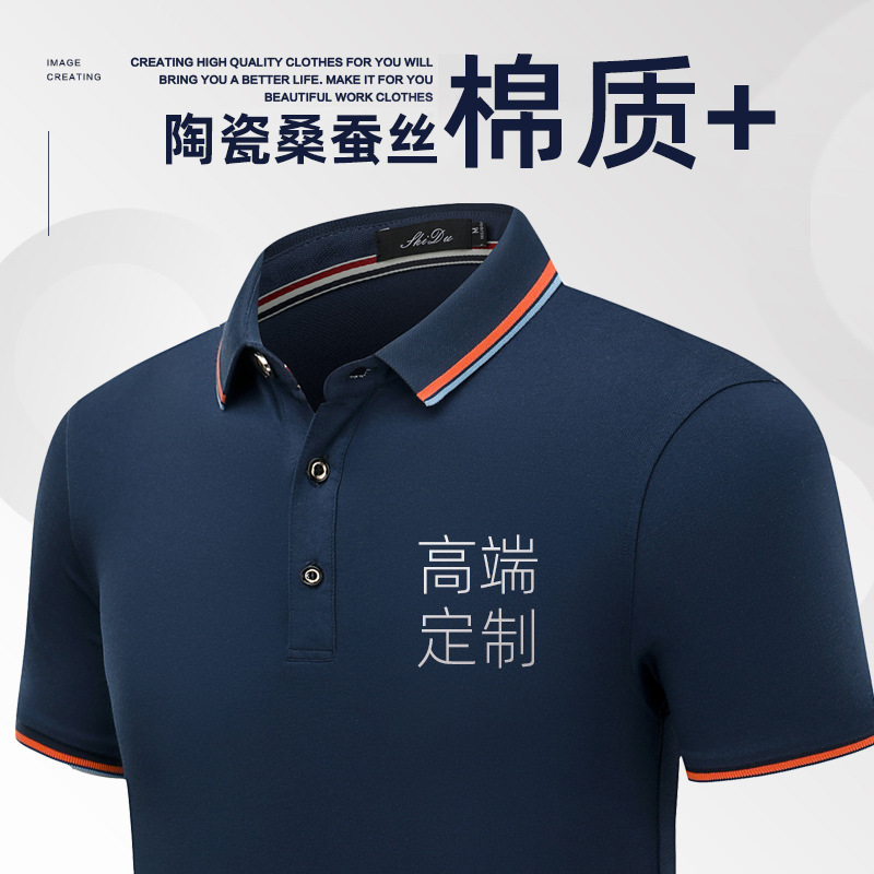半袖ポロシャツメンズハイエンド純綿アイスシルク速乾ポロシャツカスタム作業服プリントロゴ