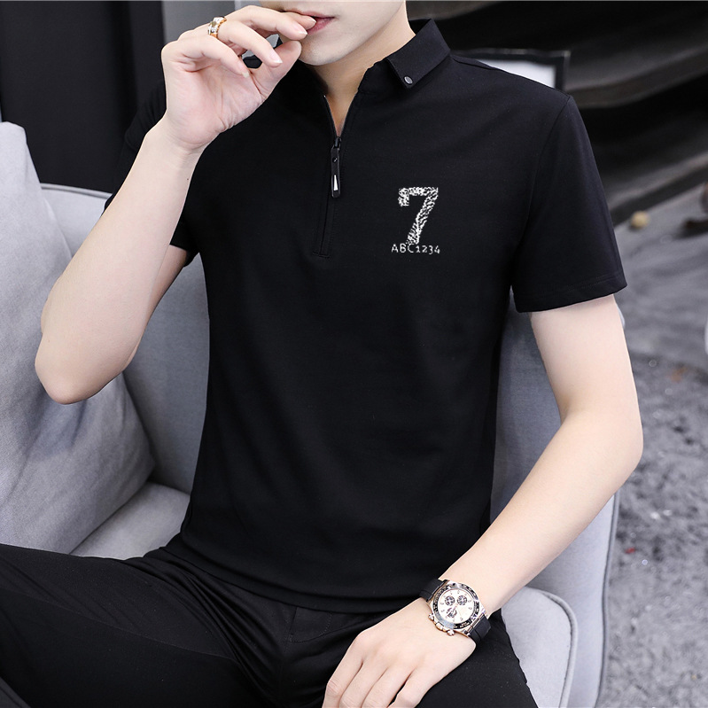 夏の新しいメンズ半袖ポロシャツ若者と中年のトレンディな韓国スタイルのスリムでファッショナブルなスタンドアップカラーメンズトップス卸売