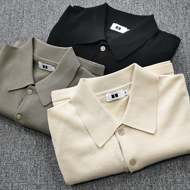 高級感polo襟半袖セーター男性夏2025新型ファッション修身半袖襟ニットシャツ